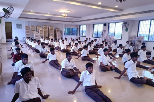 "A Healthy School Begins with a Peaceful Mind" - convened by Mr. K. Perumal, (Head) & Mrs. U. S Viayalakshmi, Assistant Professor, Art of Mind Development organization - International Yoga Day.